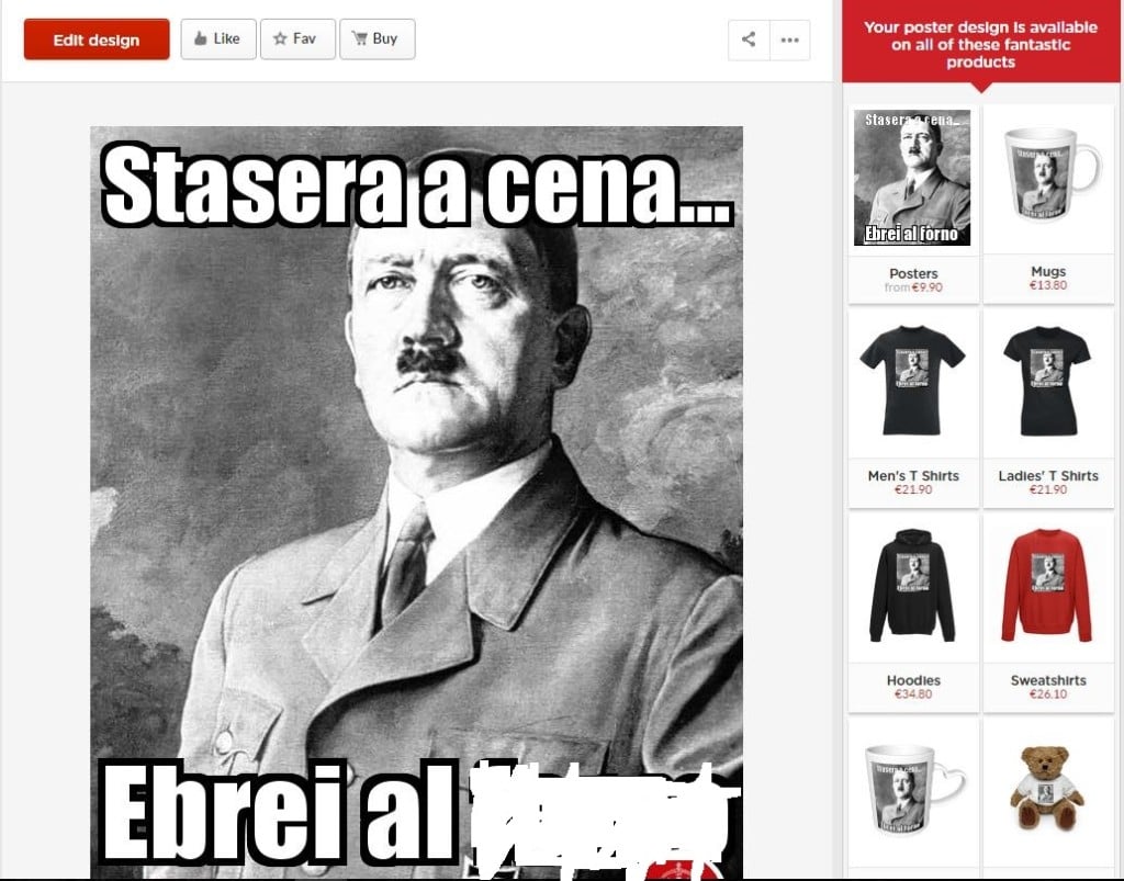 Un negozio telematico dedicato alle vendita di borse, t-shirt, orsetti di pezza, poster, tazze, permette ai clienti, attraverso un meme generator, di personalizzare i prodotti scelti, è quindi possibile creare ed acquistare anche dei gadgets neonazisti dedicati ad Hitler.