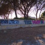Spiaggia di Pittulongu, comune di Olbia, ignoti tracciano scritte e simboli pro pal e antisemiti, tra cui «Gesù palestinese» ed «Ebreo ammazza bambini».