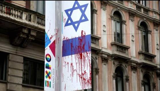 La bandiera dello Stato di Israele esposta nella centrale via Dante con le altre dei paesi che partecipano all’ Expo, è stata imbratta per l’ennesima volta con vernice rossa .