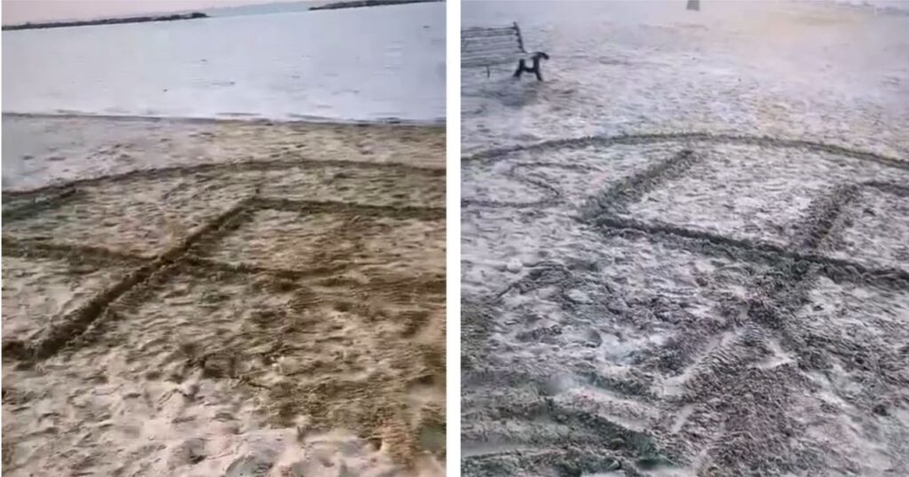 Maxi svastica disegnata sulla spiaggia da un bambino straniero (con i genitori impassibili)