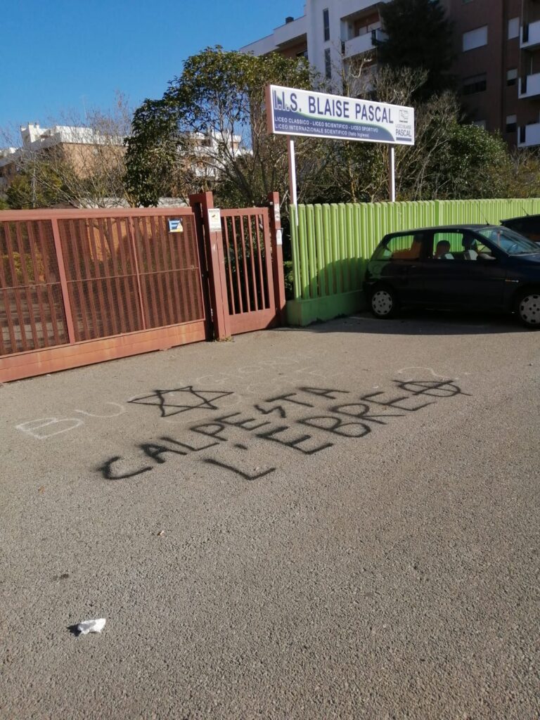 Ancora scritte antisemite. Stavolta l’attacco non era diretto solo contro singole persone ma aveva come obiettivo anche le scuole e le loro scelte educative. «Calpesta l’ebreo» e «Anna Frank brucia». Accanto, la stella di David e una svastica. Sono le scritte apparse a Pomezia, in provincia di Roma, davanti al liceo Pascal e all’Istituto di largo Brodolini. A denunciarlo è stato il sindaco del comune laziale Adriano Zuccalà che ha espresso «una ferma condanna» a nome di tutta l’amministrazione comunale. All’Istituto di largo Brodolini era previsto in mattinata la visita di Gabriele Sonnino, testimone della Shoah, mentre al liceo Pascal da poco si era tenuto un incontro in occasione della Giornata della Memoria.