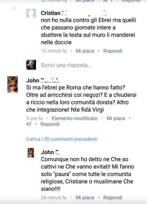 «Si ma l’ebrei pe Roma che hanno fatto? Oltre ad arricchirsi coi negozi? E a chiudersi a riccio nella loro comunità dorata. Altro che integrazione! Ntè fidà Virgì»;