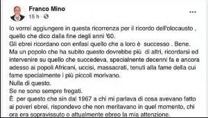 Franco Mino, consigliere comunale della Lega di Biella, nel Giorno della Memoria ha attaccato gli ebrei con un post Facebook, di seguito alcuni stralci: