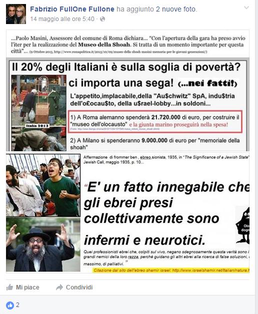 Fullone_antisem Pubblicata il 21 Settembre 2016 alle 516 × 627 in Post antisemiti pubblicati su Facebook da un simpatizzante della destra radicale