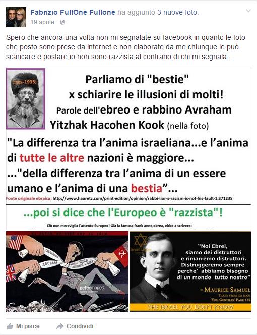 Fullone_ebreibestie Pubblicata il 21 Settembre 2016 alle 510 × 664 in Post antisemiti pubblicati su Facebook da un simpatizzante della destra radicale
