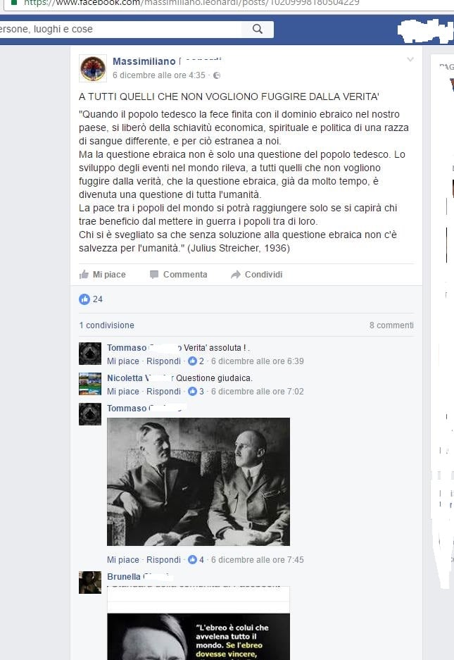 Massimiliano L. annovera tra i suoi amici Facebook numerosi neonazisti molto attivi sui social networks.