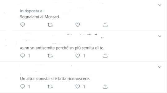 N gestisce un profilo Twitter di propaganda antisionista, si presenta come italo-arabo ed afferma di non poter essere antisemita in quanto semita, però posta/condivide in continuazione materiale che demonizza i “sionisti”.