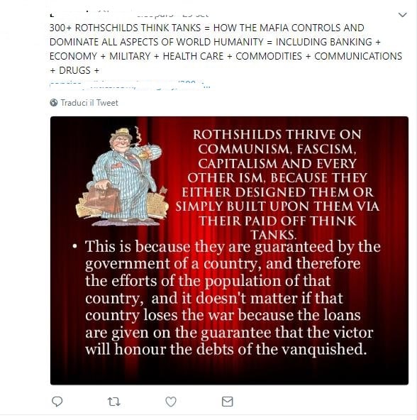 Profilo Twitter cospirativista ed antisemita