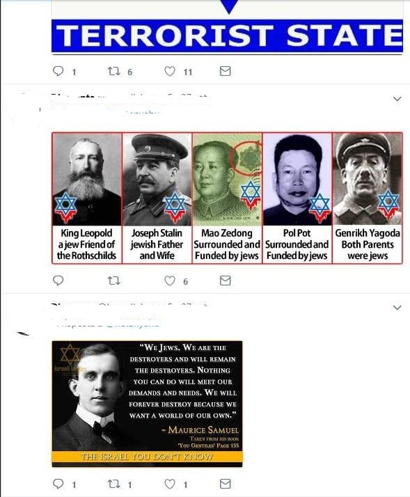 Profilo Twitter cospirativista ed antisemita