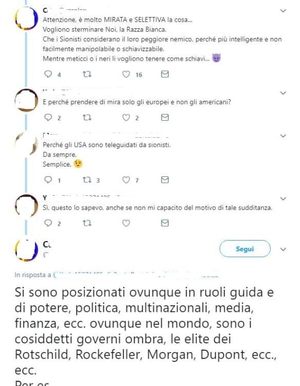 Profilo Twitter sovranista ed antisemita