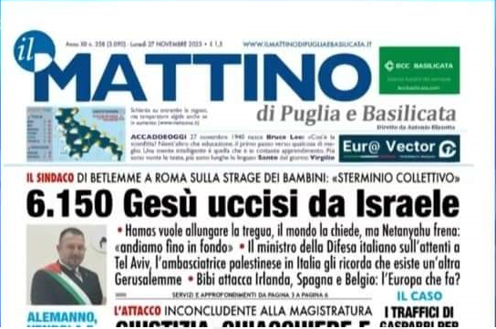 Il quotidiano Il Mattino di Puglia e Basilicata titola in prima pagina “6.150 Gesù uccisi da Israele”, seguendo le parole del sindaco di Betlemme, ma alimentando così il mito di accusa del deicidio e facendo passare gli israeliani come assassini di Gesù. L’ebreo deicida è il principale stereotipo accusatorio dell’archivio antiebraico.