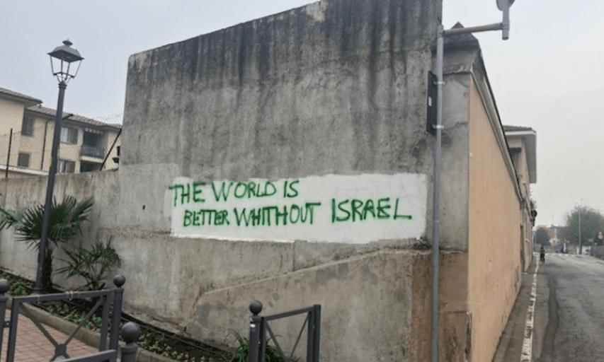 Scritte antisemite sono apparse oggi, lunedì 18 novembre, sui muri all’angolo di via Bertolazzi a Rivolta d’Adda. Nel mirino Israele, ma non solo. E’ stato tirato di mezzo anche il sindaco Giovanni Sgroi additato come “ebreo” dagli anonimi autori delle vergognose frasi.
