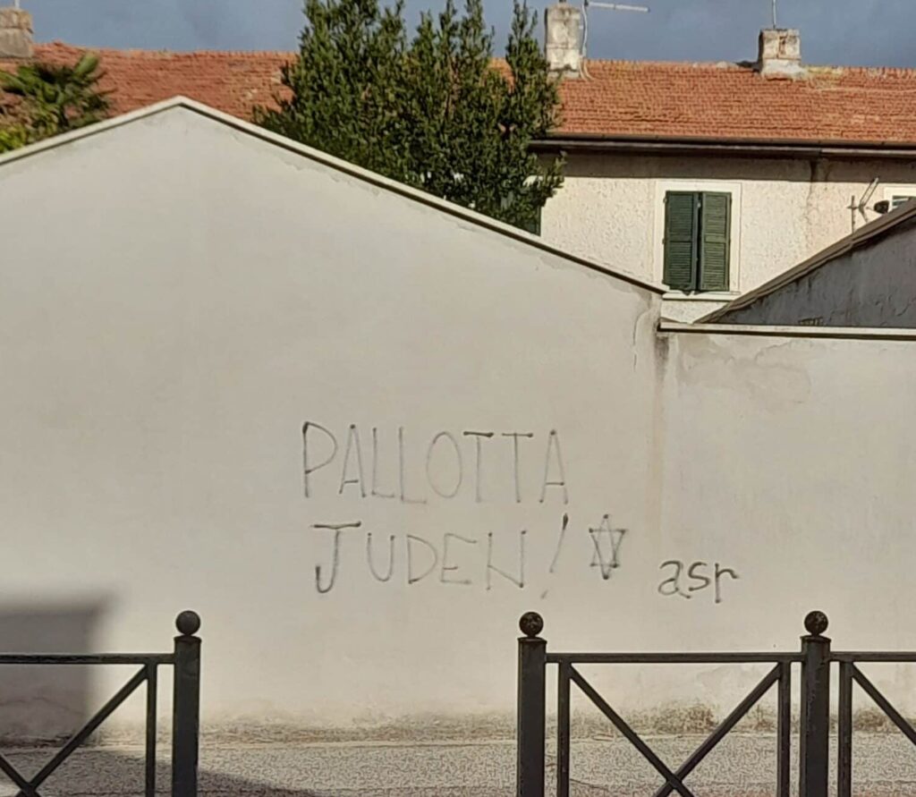 Stampa 21 Ottobre 2024 Roma, antisemitismo nel calcio Luogo: Roma Fonte: Segnalazione CE In aumento gli adesivi e le scritte antisemite delle tifoserie romane, alcune in zona Fiumicino, alcuni a pochi metri dal Comune.