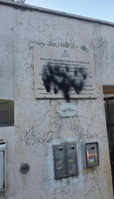 1_3 Pubblicata il 1 Dicembre 2025 alle 434 × 758 in Roma, il gruppo “Monteverde antisionista” vandalizza la sinagoga “Bet Michael” e profana la targa commemorativa dedicata a Stefano Tachè