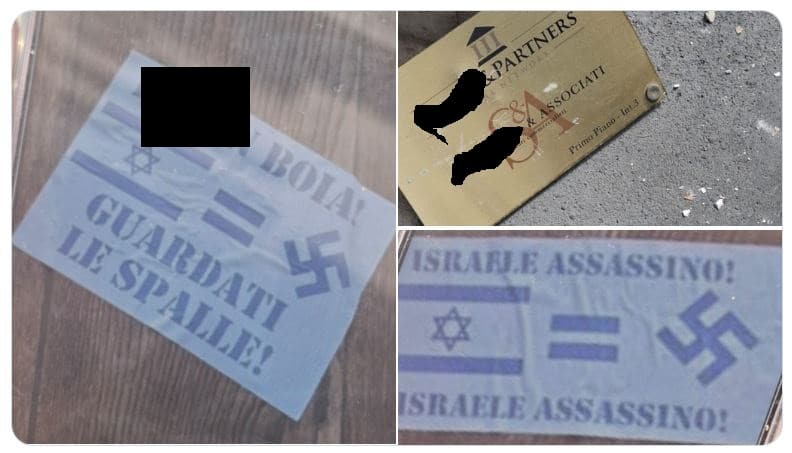 Stampa 25 Settembre 2025 Roma, minacce ad un avvocato ebreo Luogo: Roma Fonte: Segnalazione «boia guardati le spalle» A Roma vandalizzata la sede di un noto studio legale e commerciale. L’avvocato minacciato («boia guardati le spalle»), ebreo, è anche consigliere della Comunità Ebraica.