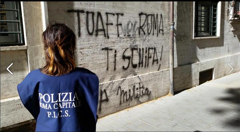 Ancora scritte contro il rabbino Toaff con la firma di Militia: dopo gli insulti cancellati martedì, i vigili urbani del Pics sono tornati al lavoro per cancellarne di nuovi a Tor Fiorenza, sulle mura dei licei Giulio Cesare e Lucrezio Caro, sul lungotevere Acqua Acetosa, in via Marco Polo e in via Cerveteri.