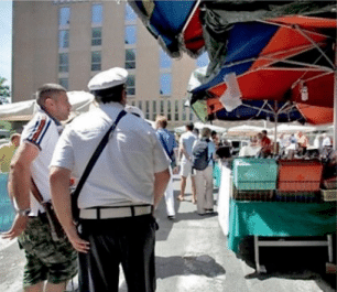 L’obiettivo è chiaro, fare in modo che chi passi lo calpesti, l’offenda. I frequentatori del mercato, ignari, ci passano sopra tra le risate degli autori dello sfregio.