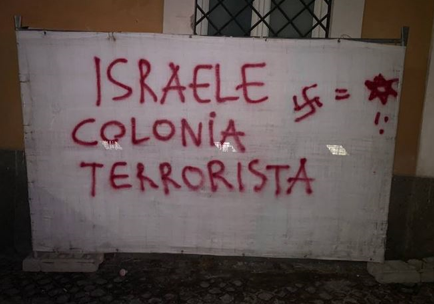 Stampa 27 Ottobre 2023 Roma, scritte antisioniste e antisemite Luogo: Roma Fonte: Segnalazione OS Israele terrorista Roma, rinvenute scritte ingiuriose a Trastevere recitanti: UCEI = MAFIA e Israele Colonia Terrorista e Israele Terrorista con svastiche.