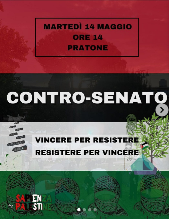 Dopo la giornata di sabato, con la partecipazione al corteo pro Palestina e il ritorno in serata nel presidio fisso delle tende, la domenica sarebbe dovuta trascorrere tranquilla nelle intenzioni, tra dibattiti, aperitivi e iniziative organizzate dagli studenti. E invece con il buio sono scattati gli atti vandalici. Le scritte, oltre a inneggiare alla «Palestina libera», a chiedere lo «stop del genocidio», a denunciare che «a Gaza non ci sono più muri su cui scrivere» (frase riportata in romanesco), a invitare «fuori (dall’università, ndr) Leonardo e i sionisti», ricordano anche l’appuntamento con il «contro senato» accademico di oggi. Ma le parole impresse sui muri non si limitano alla rivendicazione delle ragioni per cui da mesi va avanti la protesta degli universitari, ovvero il boicottaggio accademico di Israele e dell’industria bellica e «d’Intifada palestinese». Tra le scritte si leggono anche «pensieri» rivolti alla rettrice («Polimeni dimettiti» e «Polimeni dove sei?») e alle forze dell’ordine, più volte chiamate a intervenire durante le manifestazioni («Le nostre idee, i vostri manganelli»). Il numero delle tende (ri)montate sul pratone nei giorni scorsi dopo un’assemblea, accogliendo l’invito di altre realtà universitarie a proseguire le proteste, nel frattempo è aumentato: rispetto al primo giorno ora se ne contano più di una ventina. Una vicina all’altra, nello spiazzo vicino alla struttura dell’aula Ti (neanche questa risparmiata dalle scritte inneggianti alla Palestina), presidiate giorno e notte, con un fitto calendario di incontri redatto dagli universitari. Nessun commento ufficiale, o via social, da parte degli occupanti su quanto accaduto la scorsa notte. «C’è qualcuno che lo ha fatto in modo autonomo – dicono dal coordinamento dei Collettivi -. Non tutte le azioni le decidiamo insieme». L’università, comunque, si è già attivata per far rimuovere il prima possibile le scritte con cui sono stati imbrattati i muri del palazzo e il viale che costeggia il rettorato. Il gesto non fa che alimentare il clima di tensione che si respira alla Sapienza (così come negli atenei di mezza Italia, da Pisa a Torino fino a Napoli): oggi si terranno il Senato accademico (all’interno del rettorato) e in contemporanea il «contro senato» accademico degli studenti nel pratone. di Clarida Salvatori