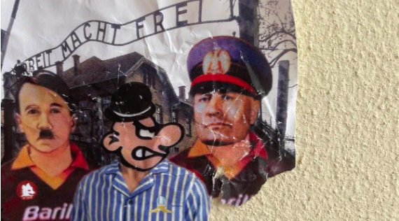 Vignetta antisemita shock a Roma: Hitler, Mussolini e l’ultras laziale “ebreo” ad Auschwitz