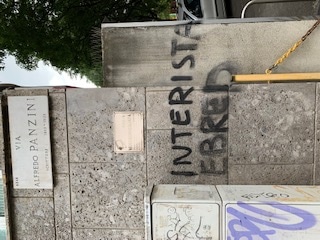 Stampa 14 Luglio 2021 Milano: scritta antisemita Luogo: Milano Fonte: Segnalazione Interista ebreo Milano, su un muro all’angolo tra via Panzini e largo Zandonai è stata tracciata la scritta: Interista ebreo