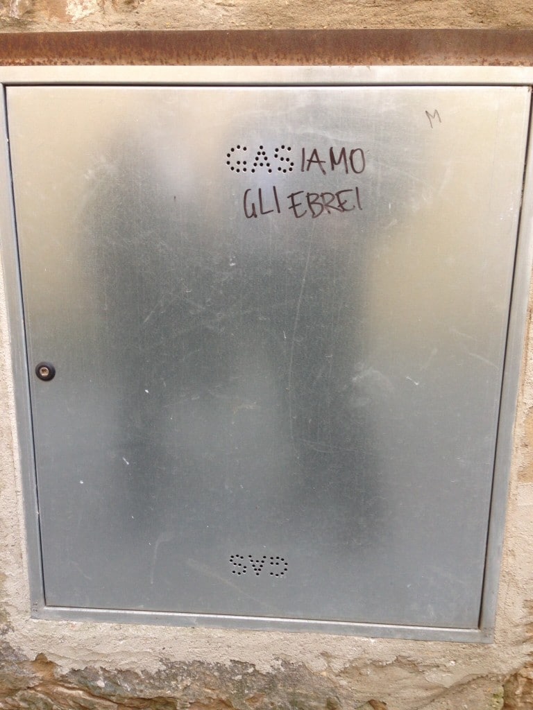 Stampa 25 Dicembre 2014 Scritta antisemita a Firenze Luogo: Firenze Fonte: Testimonianza “Gasiamo gli ebrei” Scritta trovata su uno sportello di un contatore del gas in via di Bellosguardo a Firenze.