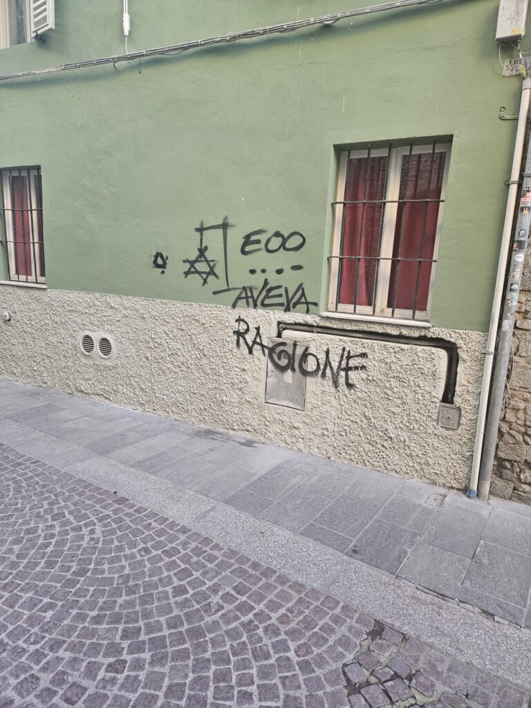 Parma, su un muro sottostante il circolo Aquila longhi ignoti tracciano un disegno che mostra un Maghen David (Stella di Davide) impiccata corredato dalla scritta «[Hitler] aveva ragione».