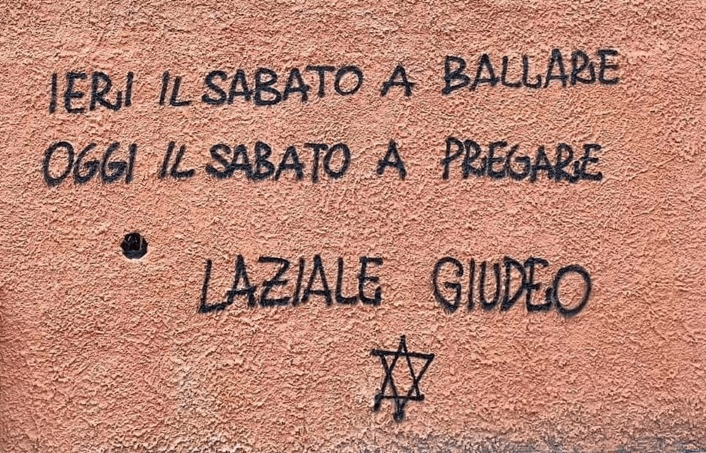 Scritta antisemita corredata da una stella di Davide (Maghen David) contro i tifosi della squadra di calcio della Lazio.