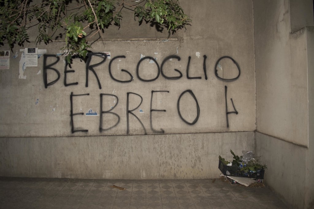 Su un muro del cimitero comunale di Condera (quartiere di Reggio Calabria), accanto al secondo ingresso del cimitero nuovo, sul muro subito a sinistra del cancello, è stata tracciata con vernice nera la scritta “Bergoglio ebreo”, a fianco di essa un graffito che richiama una runa, simbolo spesso usato dal neonazismo.