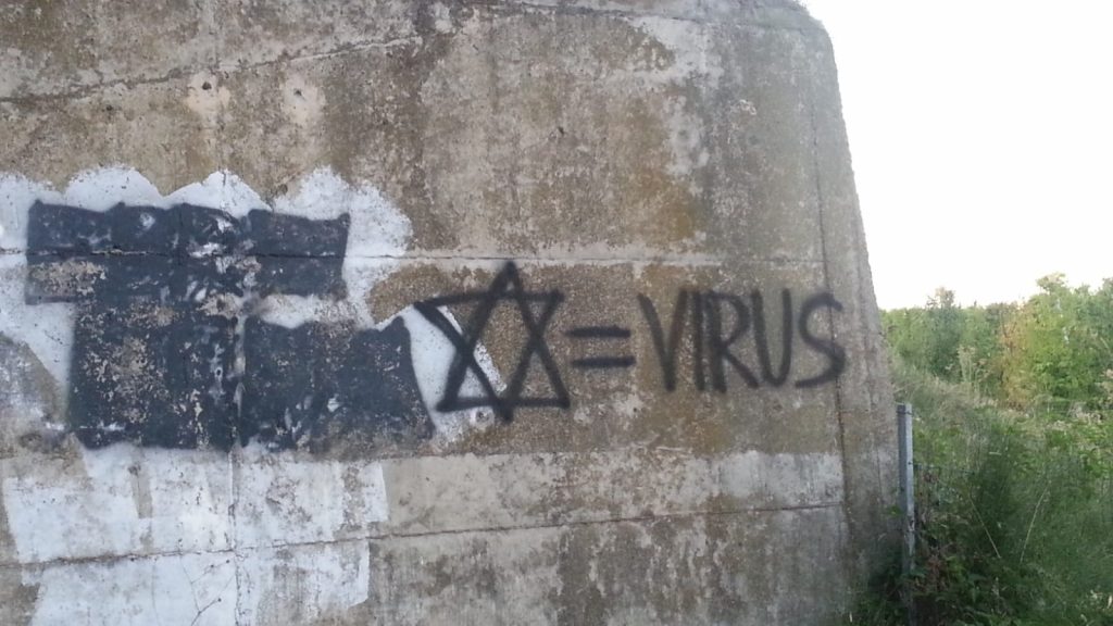 Un cavalcavia in provincia di Forlì viene usato come lavagna per tracciare scritte antisemite che vengono poi cancellate dall’amministrazione comunale. Stavolta è stato disegnato un Maghen David (Stella di Davide) e la parola “virus”.