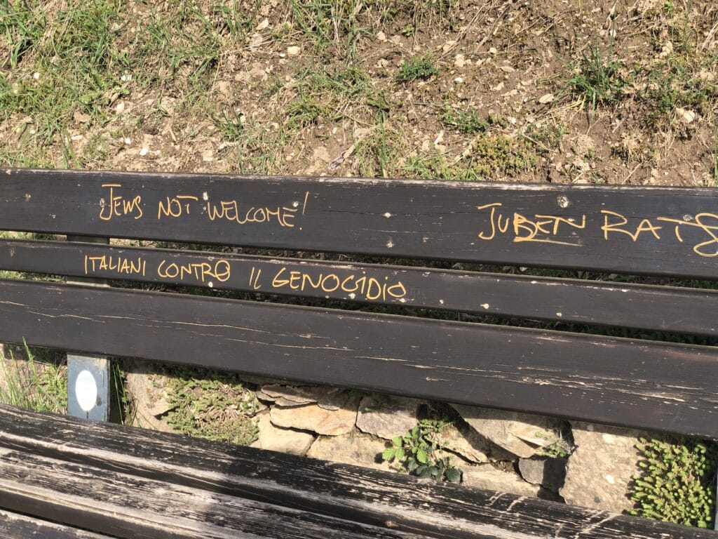 Stampa 7 Aprile 2024 Scritta su una panchina: “Ebrei non sono i benvenuti” Luogo: Caldonazzo Fonte: Segnalazione A Caldonazzo su una panchina vista lago è comparsa la scritta “Ebrei non sono benvenuti” e “Italiani contro il genocidio”.