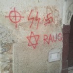 Il Comune di Fondi non ha fatto in tempo a ripulire le scritte negazioniste comparse sulla facciata dell’Auditorium «San Domenico» che i vandali neonazisti sono tornati all’opera, ieri notte hanno tappezzato con svastiche, croci celtiche e altri simboli nazisti l’antico quartiere ebraico della Giudea.