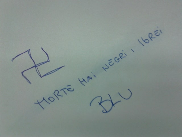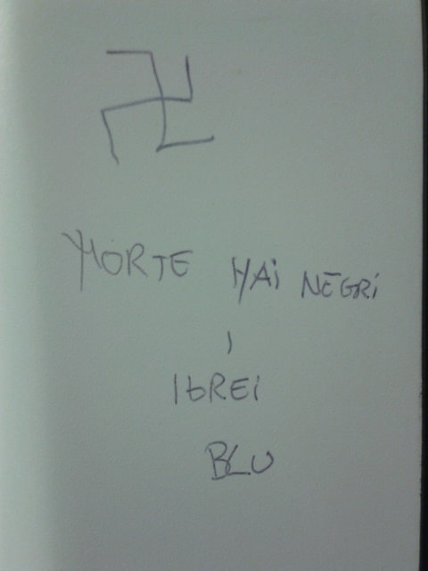 Stampa 26 Agosto 2014 Scritte antisemite sul treno Luogo: Milano Fonte: Testimonianza Scritte ripetute di matrice antisemita e neonazista su un vagone di un treno della linea Milano Cadorna – Canzo/Asso.