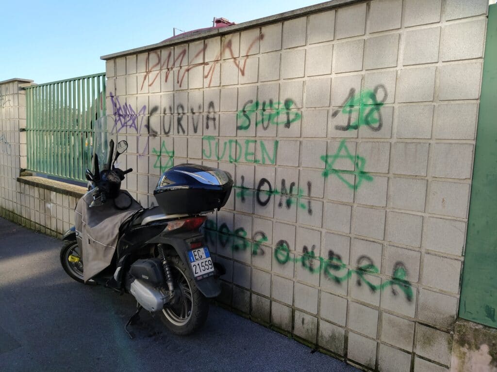 Stampa 30 Gennaio 2020 Scritte contro gli ebrei Luogo: Milano Fonte: Segnalazione “Juden” Milano, via Marinella, su un muro vengono tracciate scritte antisemite e razziste.