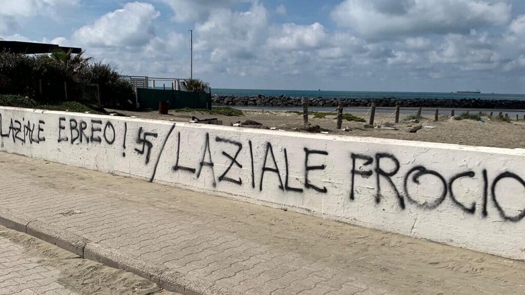 Ancora attacchi razzisti e omofobi con il calcio come cassa di risonanza. Tre scritte sono apparse venerdì sul litorale romano, nei pressi del lungomare di Isola Sacra nel comune di Fiumicino. Le tre scritte recitavano “Laziale ebreo” con tanto di svastica a seguito, “Laziale Fr***o” e “Voi pochi, voi felici pochi, voi manipolo di fr**i”.