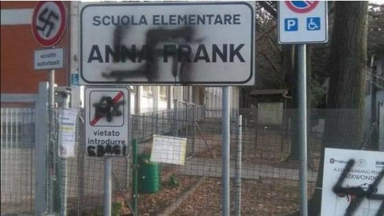 Svastiche e simboli nazisti davanti alla scuola Anna Frank