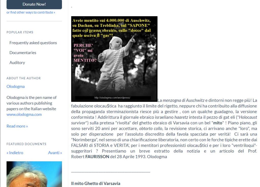 L’insegnante Mariateresa R. mentre sa effettuando delle ricerche online per un progetto di didattica della Shoah, si imbatte in una serie di siti web negazionisti ed antisemiti come Olodogma e CODOH .