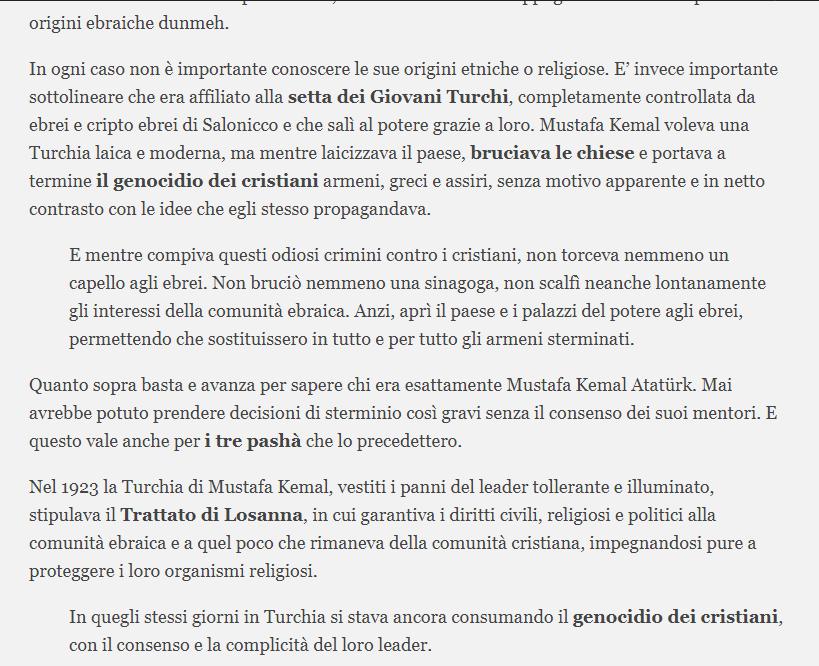 Sito web di complottismo antisemita pubblica – quotidianamente – articoli contro gli ebrei dove si reperiscono tutti i più sanguinari miti giudeofobici (tra cui quello di omicidio rituale), recentemente ha dipinto il padre della Turchia moderna Mustafa Kemal come un cripto-ebreo (dunmeh) adepto di un culto perverso e sanguinario e quindi, in ragione di ciò, ispiratore di massacri anticristiani.