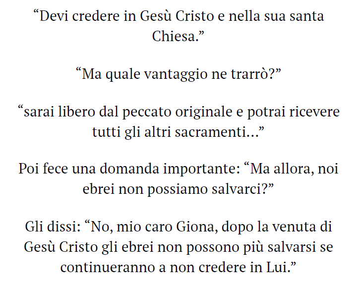 «dopo la venuta di Gesù Cristo gli ebrei non possono più salvarsi»