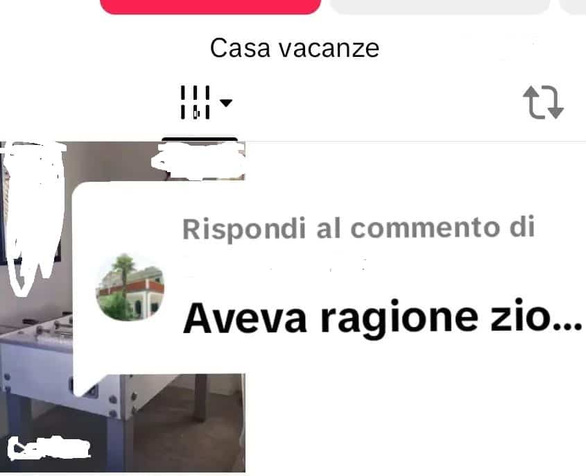 Stampa 25 Dicembre 2024 Social web, commento che inneggia a Hitler Fonte: Segnalazione «Aveva ragione zio…» Proprietario di una casa vacanze nell’Italia centrale posta sul suo social web un commento che inneggia a Hitler: «Aveva ragione zio…». Zio, nel gergo degli odiatori degli ebrei, identifica Adolf Hitler