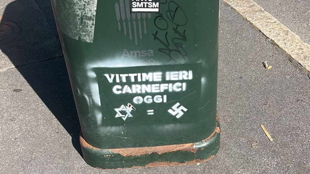 “Vittime ieri carnefici oggi”. Poi un immagine: la stella di David è uguale alla svastica. Non poteva essere più chiaro di così il riferimento di chi nelle scorse ore ha realizzato alcune scritte in giro per la città di Milano. A denunciare l’accaduto il deputato di Fratelli d’Italia, Riccardo De Corato. “Alcuni cittadini mi hanno segnalato che in giro per la città, soprattutto nella zona Primaticcio/Bande Nere, ci sono delle scritte ‘vittime ieri carnefici oggi’ accompagnate da simboli affisse attraverso degli stencil e colorate con bomboletta spray bianca sui cassonetti dell’immondizia. Trovo vergognoso, disgustoso e inaccettabile questo parallelismo tra Israele e il nazismo”. De Corato aggiunge: “Mi auguro e lo spero vivamente che qualcuno, da Palazzo Marino, intervenga al più presto e faccia rimuovere queste indegne offese. Questo è un ulteriore segnale a conferma del fatto che Milano è la città più antisemita d’Italia. È assurdo che dal 7 ottobre 2023 a oggi ogni week end nelle vie centrali della città si sono tenuti e continuano a tenersi cortei e manifestazioni pro Hamas con conseguenti disagi/blocchi del traffico e penalizzando il commercio cittadino. A questi cortei partecipano anche i Centri Sociali, no global, antagonisti e una numerosa presenza di arabi che come sappiamo a Milano sono numerosi”.