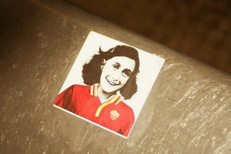 Sfregio antisemita: adesivi di Anna Frank con la maglia della Roma