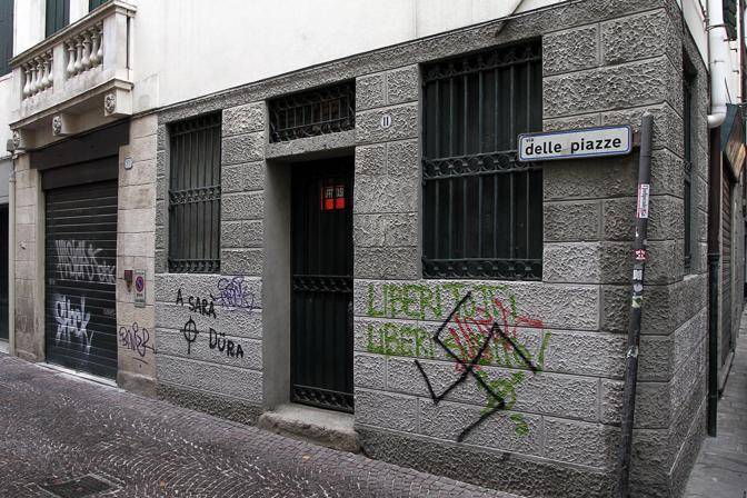 PADOVA 24/06/2013 BERGA/FOS VIA DELLE PIAZZE . SVASTICA CONTRO LA SINAGOGA. Pubblicata il 9 Luglio 2013 alle 672 × 448 in Svastica di fronte alla sede della comunità ebraica di Padova