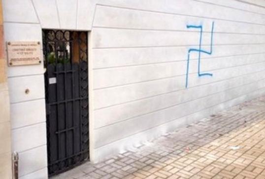 Svastiche tracciate sul muro del cimitero ebraico di Vercelli