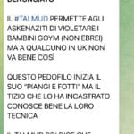 «Il Talmud permette agli askenaziti di violentare i bambini goym (non ebrei)… chi supporta Israele è infettato dal male, infettato da Satana»