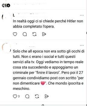 Utenti Threads postano commenti contro gli ebrei («In realtà oggi ci si chiede perché Hitler non abbia completato l’opera») e paragonano la situazione di Gaza alla Shoah.