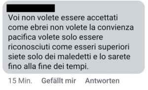 “Voi non volete essere accettati come ebrei non volete la convivenza pacifica volete solo essere riconosciuti come esseri superiori siete solo dei maledetti e lo sarete fino alla fine dei tempi.”