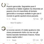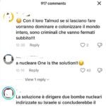 Il profilo TikTok di una importante rete televisiva nazionale pubblica articoli dedicati al conflitto tra Hamas ed Israele, seguono moltissimi commenti antisemiti, spesso connotati da un linguaggio aggressivo, greve e di incitazione al genocidio degli ebrei. L’invettiva maggiormente usata da questi tiktokers consiste nel sostenere che gli ebrei sono crudeli e razzisti e ciò spiega il fatto che hanno subito – meritate – persecuzioni nel corso dei secoli e che Adolf Hitler (zio Adolfo, baffetto, il baffo, il pittore austriaco) ha sbagliato nel non sterminarli tutti.