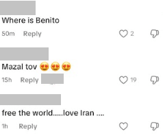 “Where is benito?” “Free Palestine” “free the world… love Iran ….”