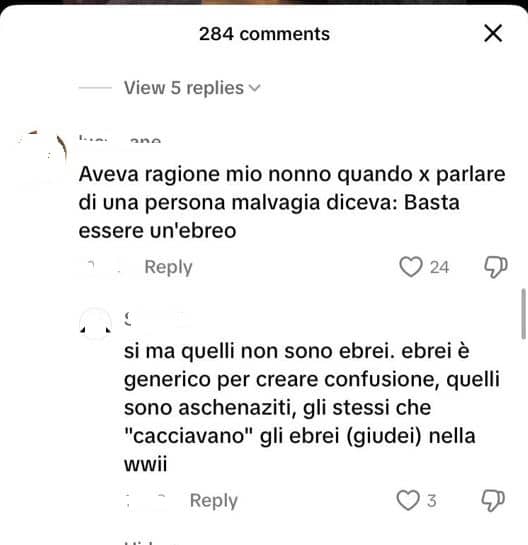TikTok, decine di commenti antisemiti